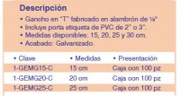 • Gancho en “T” fabricado en alambrón de 1/4″