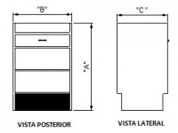 Fabricado en Melamina color blanco con Zoclo de madera sólida en color negro.